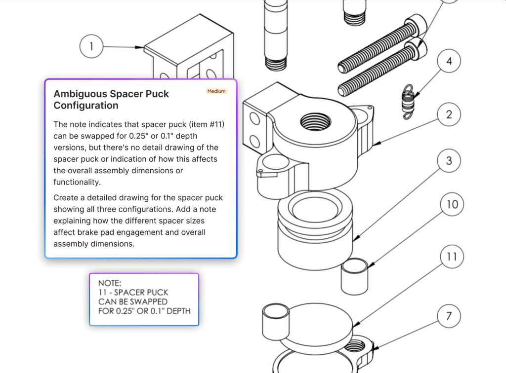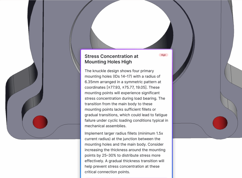 AutoReview scans documents to identify common issues, such as errors in drawings and design for manufacturing (DFM) considerations. For instance, it can detect missing or incorrect countersinks—features that help ensure a screw head fits properly. It also checks molding measurements to verify wall thickness and assess whether molds can be removed effectively during manufacturing.