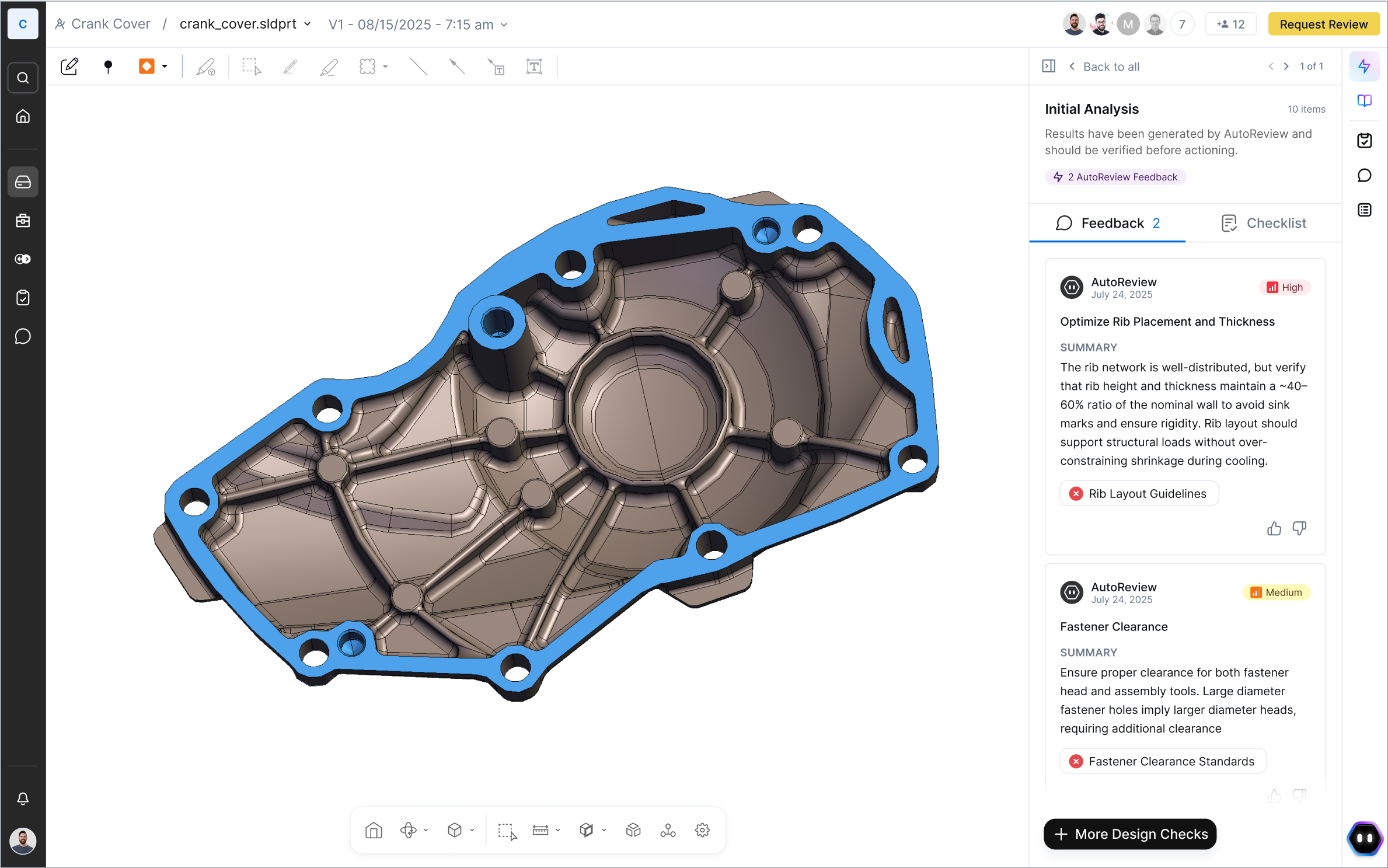 AutoReview scans documents to identify common issues, including drawing errors and design for manufacturing concerns.