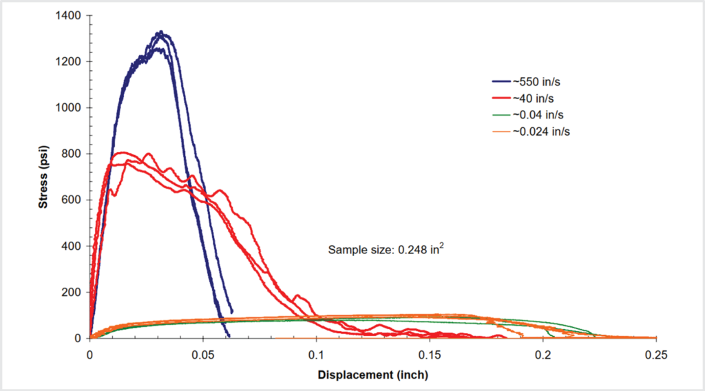 Figure 1: Displacement of 3M VHB Tape at various strain rates. (Image: 3M.)
