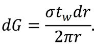Considering the cylindrical symmetry shown in Fig. 2, the conductance of a differential ring, dG, with a distance of r from the z-axis and differential cross section area of twdr is: