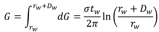 Here, σ = 5.8 × 10⁷ S/m is the conductivity of copper. Each turn can be considered as an equipotential surface and the total conductance of one turn, G, can be derived by: