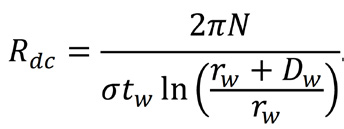 Using (4), the DCR of the flat wire winding, Rdc, with N number of turns, is derived from: