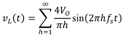 In this condition, the voltage of the inductor, L, is like a square wave voltage source with an amplitude of VO and switching frequency of fs. Using the Fourier series, the inductor voltage, vL(t), and its hth current harmonic amplitude, Ih, can be formulated by: