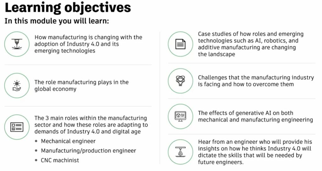 “There were requests to make the courses as customizable as possible due to the changing landscape of Industry 4.0. We accomplished this by integrating PowerPoint slide decks and videos that faculty and instructors can switch out to keep up with the latest information,” says Singh.