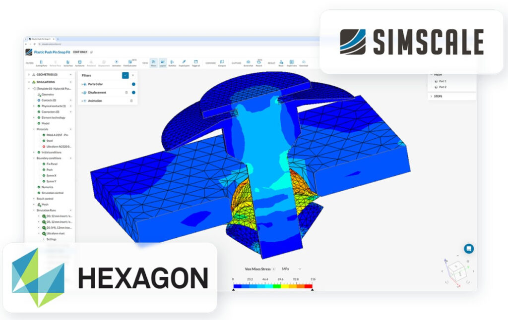 MUNICH, Germany, Dec 4, 2024 – SimScale GmbH and Hexagon’s Manufacturing Intelligence division announced a strategic partnership to transform how engineering teams deploy advanced structural analysis. The collaboration removes traditional accessibility barriers by delivering the advanced capabilities of Hexagon’s Marc nonlinear finite element solver as Software-as-a-Service (SaaS) through SimScale’s intuitive cloud native platform, unlocking unprecedented value for engineering teams.