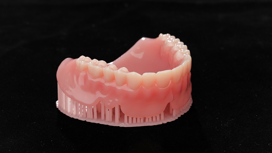 OnePrint Dentures use HeyGears' Multi-Material Fusion DLP tech to 3D print with combined resin materials.