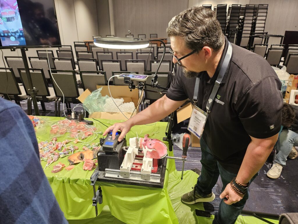 Particular standouts from this session included hotdogs cooking in a pan made from Ultem 1010 on a hotplate and a set of 3D printed dentures attached to a vise, which served as a simulated jaw that was continuously fed jawbreakers.